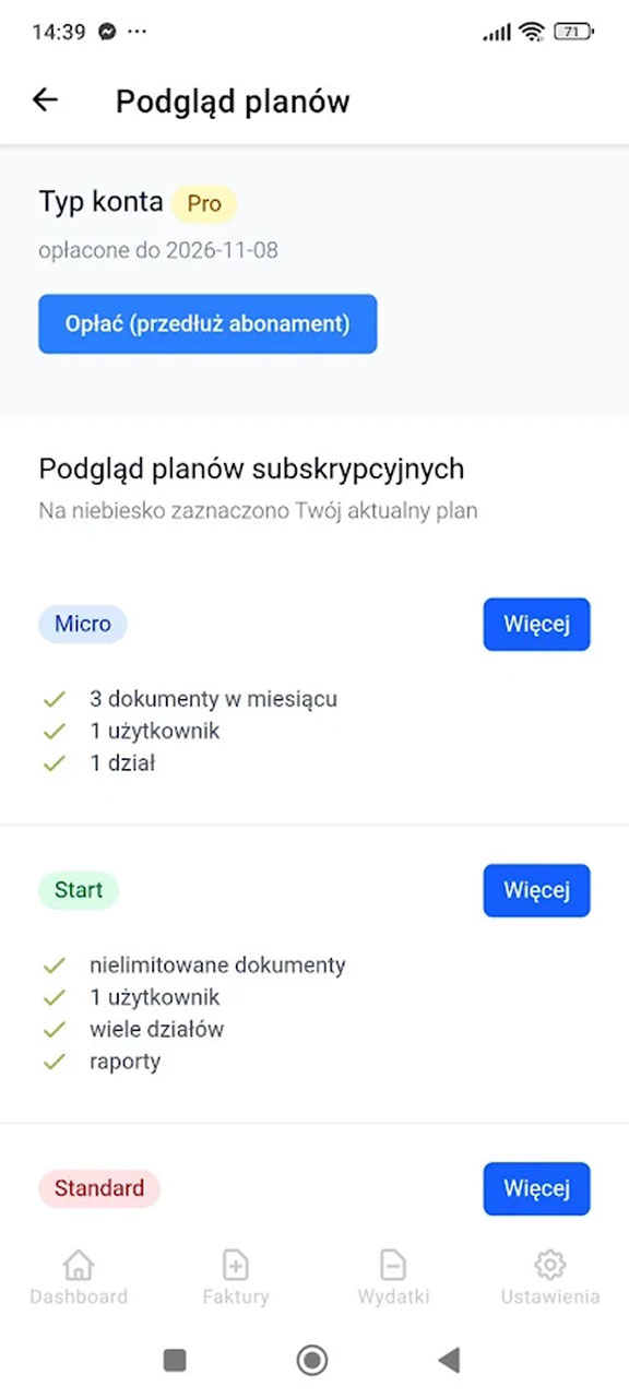 Zarządzaj przez aplikację wszystkimi kontami swojej firmy w Fakturowni i wygodnie opłacaj abonamenty.