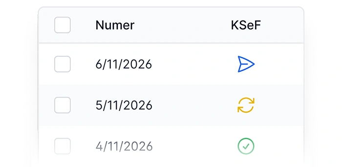 Dzięki integracji sprawdzisz status wysyłki faktur do KSeF i ewentualne błędy bezpośrednio na liście dokumentów. Skorzystasz też z filtrowania dokumentów po statusie.