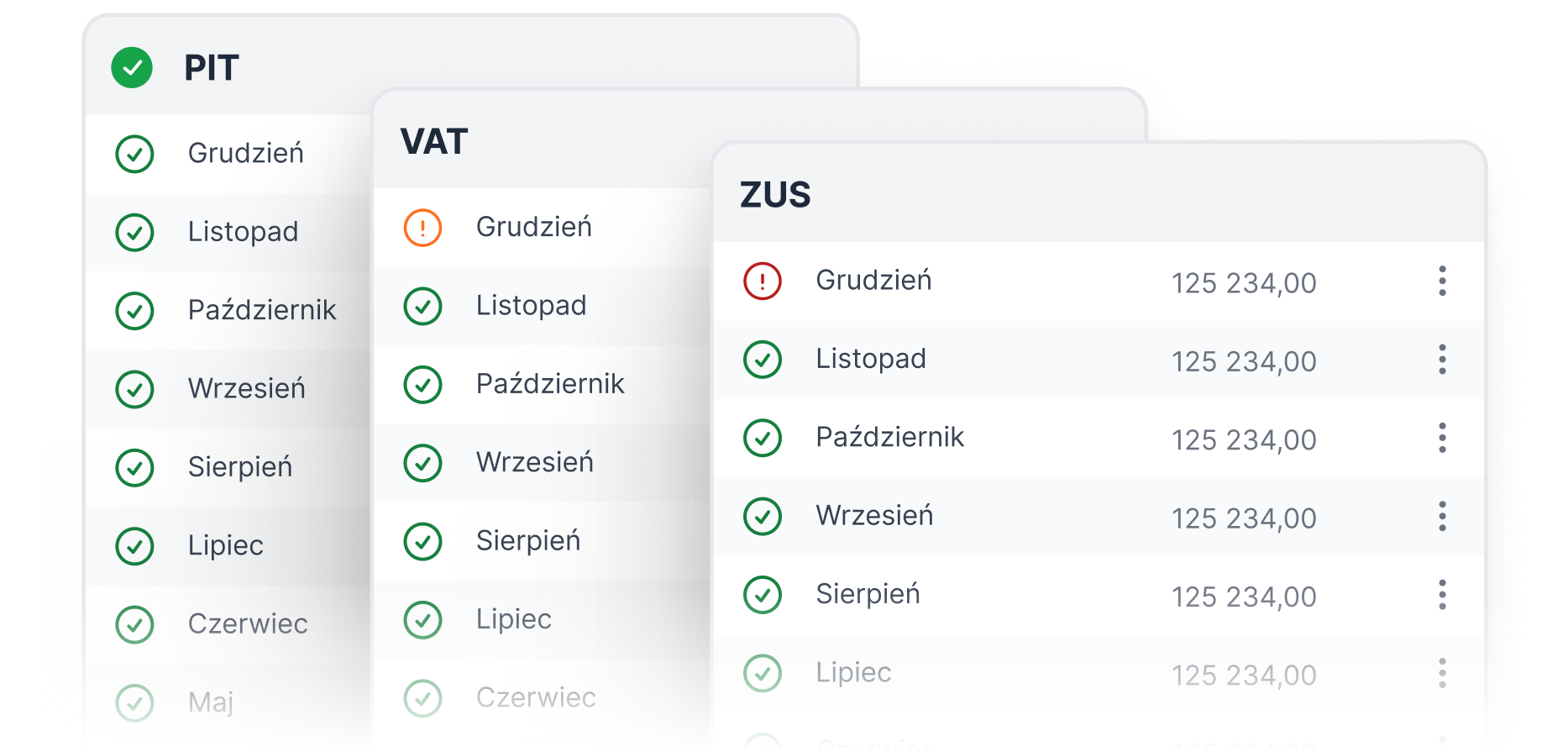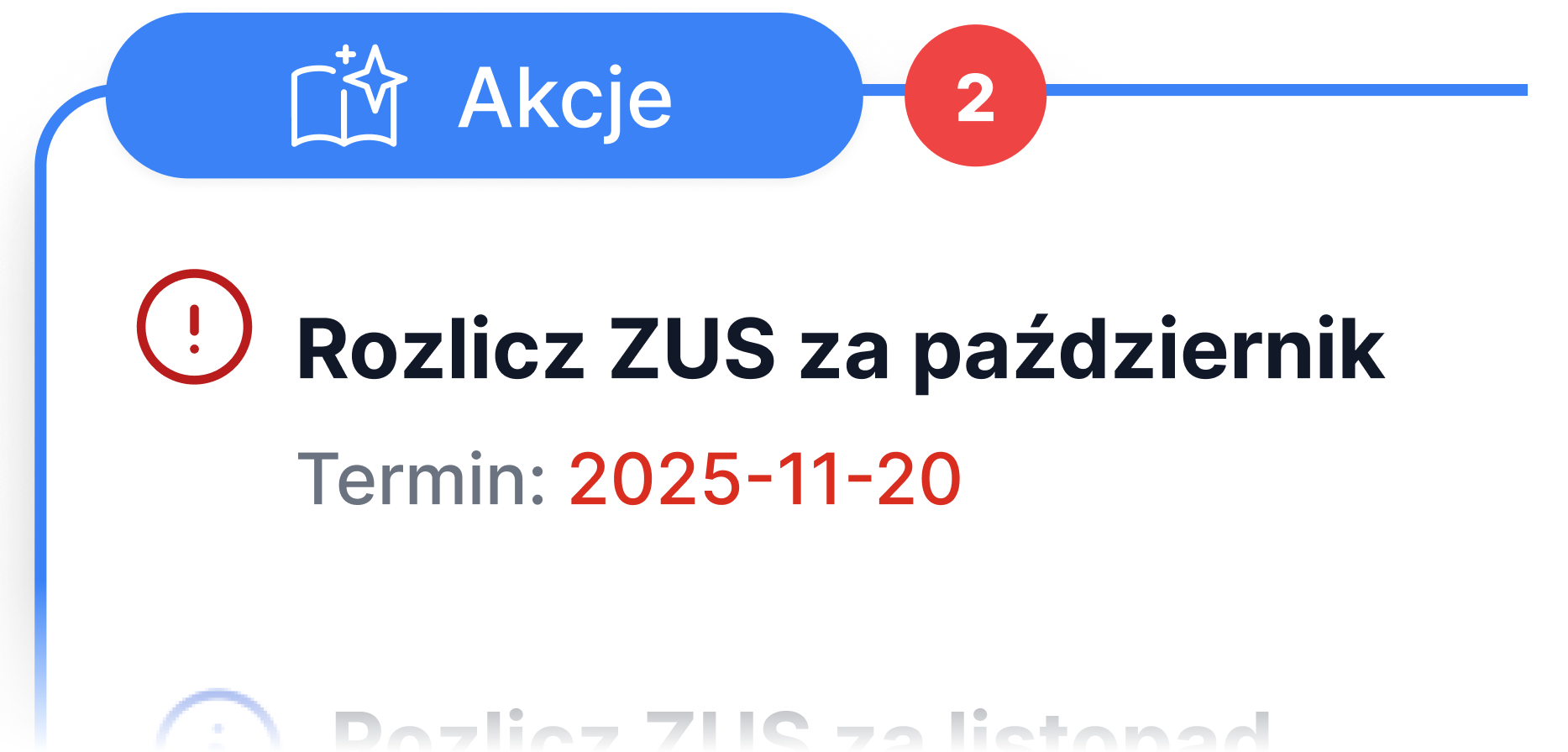 Nasz moduł przypomina Ci o wszystkich kluczowych terminach – zarówno na poziomie aplikacji, jak i w ramach powiadomień mailowych. Dzięki temu zawsze na czas rozliczysz się z urzędem skarbowym i ZUS-em.
