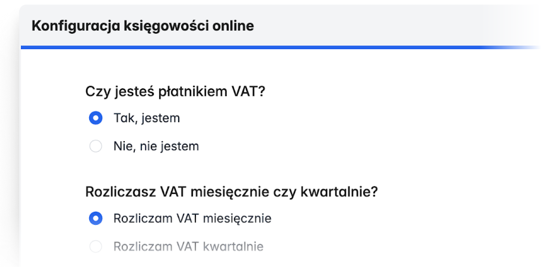 Jeśli dopiero rozpoczynasz działalność – lub zaczynasz z nami nowy rok księgowy – konfiguracja usługi zajmie Ci kilkanaście sekund. Chcesz zacząć korzystać z naszego modułu w środku roku? Dodaj do systemu pliki JPK i uzupełnij dodatkowe pola podpowiedziane przez system. 10 minut i gotowe!